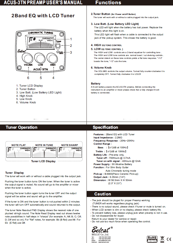 BELCAT ACUS-3TN Темброблок активный для акустической гитары